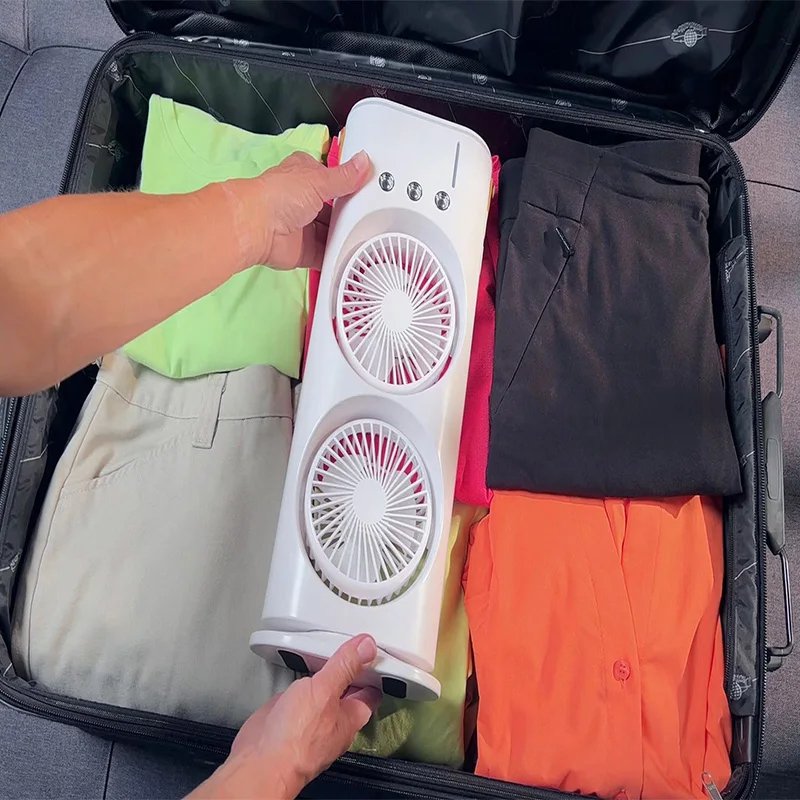 أضف لمسة من الراحة والأناقة إلى يومك مع مروحة البخار المزدوجة المبتكرة! تصميم عصري مضيء، أداء قوي، وتبريد منعش مزدوج يجعلها مثالية لكل مكان – سواء في البيت، المكتب أو حتى أثناء التنقل